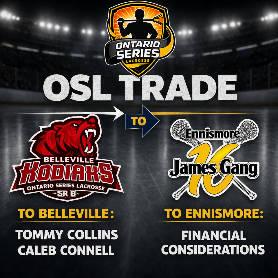 The Ontario Series Lacrosse League has announced a trade between the Belleville Kodiaks and the Ennismore James Gang.